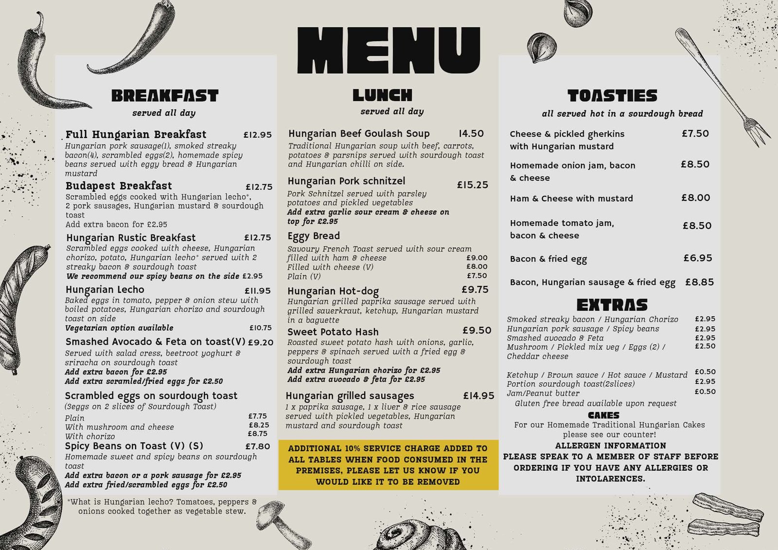 Our afternoon tea includes a selection of Hungarian cakes, Hungarian-style sandwiches, traditional English scones with clotted cream and jam, unlimited tea & coffee.